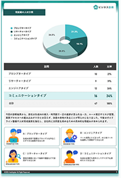(AI導入可否/対象業務/導入優先度/活用タイプ など)