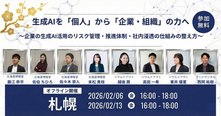 「生成AIが社内で浸透しない…」を解消!中堅・中小企業のための生成AIセミナー@北海道~社内浸透の成功事例と生成AI最新トレンド~